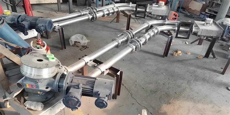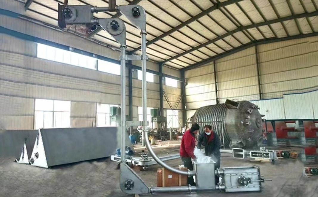 设备原理:由一根链条在形成闭环的两根管道内循环转动,链条上的刮板将物料刮动、搬运。传动方式为电机带动链轮,两端链轮分别是主动链轮与被动链轮。